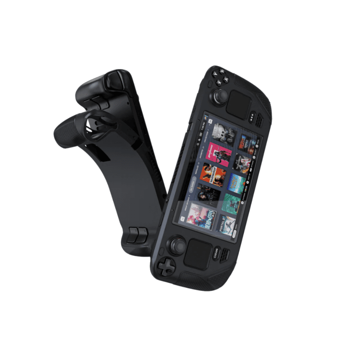 เคสซิลิโคนสำหรับ Steam Deck ช่วยให้คุณได้รับประสบการณ์ที่ราบรื่นด้วย จุกยางหุ้มอนาล็อก (thumb grips) และ ปุ่มจับแบบนูน (convex grip domes) ที่ให้ความสบายในการสัมผัสและการควบคุมที่แม่นยำ นอกจากนี้ยังมี แถบรอง (lining strips) ที่ผนวกเข้ากับตัวเคส ซึ่งให้การยึดเกาะที่ปลอดภัยยิ่งขึ้นอีกชั้น